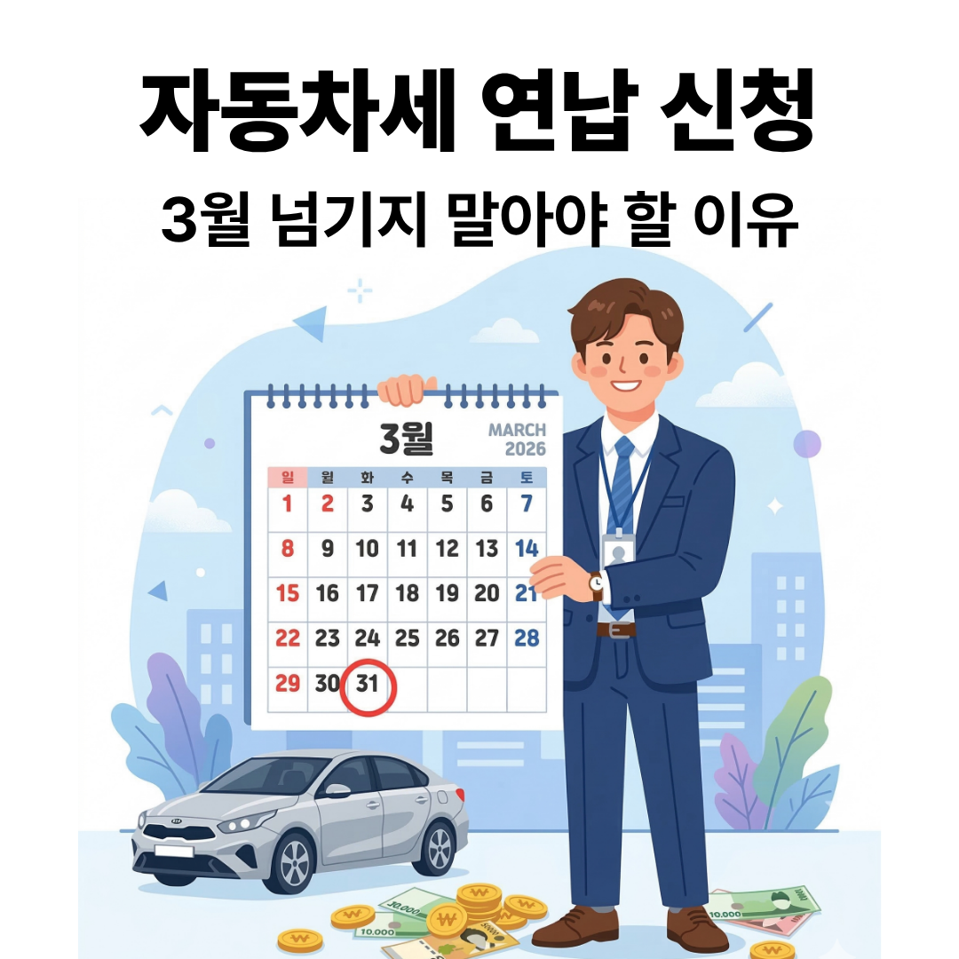3월에 신청하면 6월보다 약 3,720원을 더 아낄 수 있습니다. 연세액이 높은 중대형차라면 이 차이는 더 벌어집니다. 연세액이 60만 원이라면 3월 연납 절약액은 약 22,560원에 달합니다.