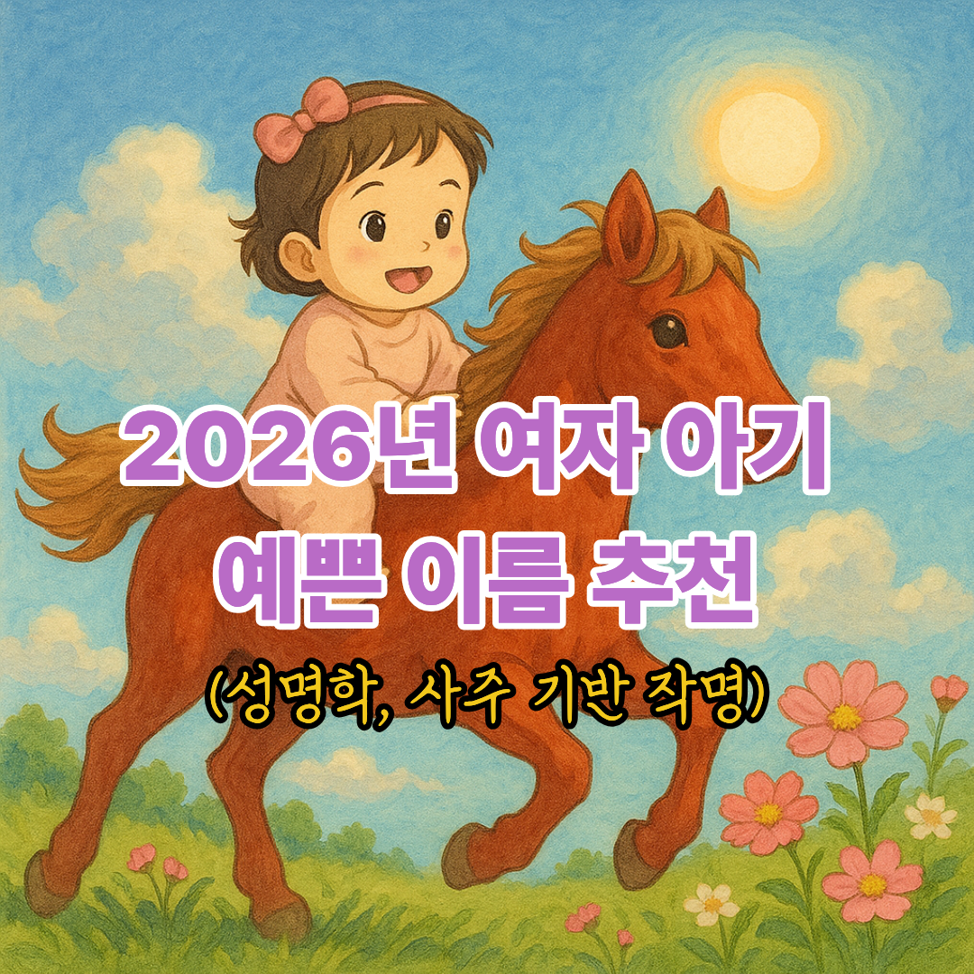 2026년 병오년(丙午年) 붉은 말띠 해에 태어날 소중한 딸을 위한 이름을 준비했습니다. 성명학과 사주 오행을 바탕으로 여자 아기에게 어울리는 아름답고 의미 있는 이름 31개를 엄선했습니다. 각 이름의 한자 뜻과 획수, 오행을 상세히 분석하여 2026년생 여아에게 최적화된 이름만을 소개합니다.