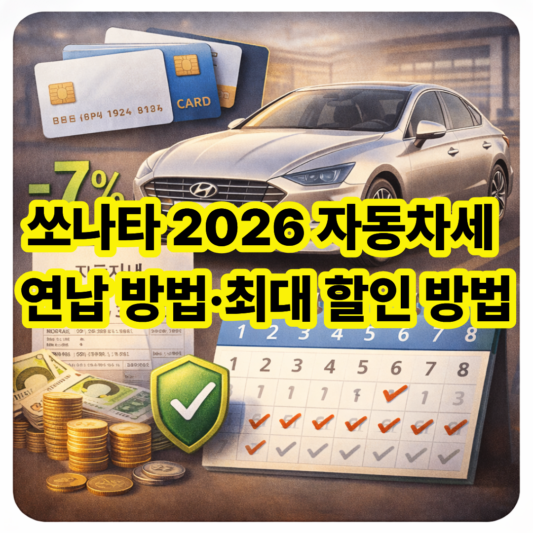 쏘나타 자동차세, 어차피 낼 거 카드 혜택까지 챙기면 5~10만원은 더 아낄 수 있습니다. 특히 2026년부터는 연납 할인율도 줄어들어서 카드 혜택이 더 중요해졌습니다.