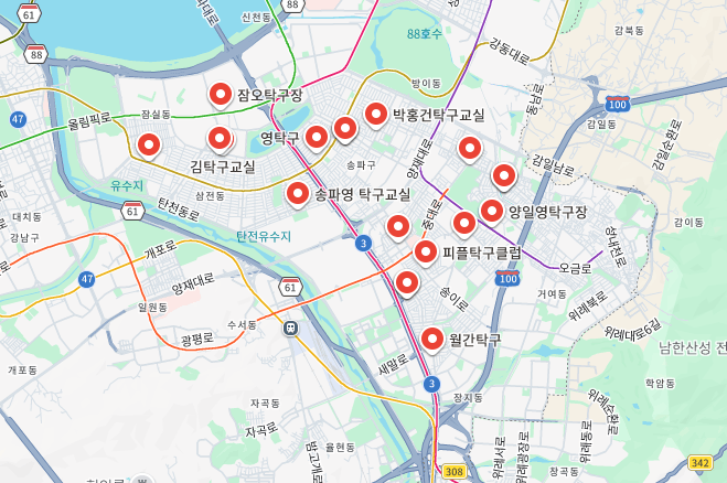 네이버 지도에서 "송파구 탁구장"으로 검색하면 현재 운영 중인 사설 클럽들의 위치·리뷰·영업시간을 바로 확인할 수 있어요. 탁구 커뮤니티 사이트 고고탁(gogotak.com)에서도 지역별 탁구장 정보를 찾을 수 있어요.